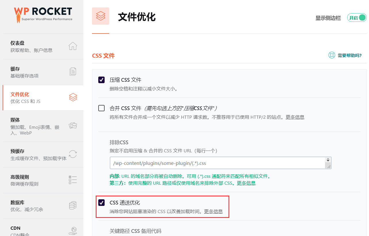 确定页面的关键CSS相当复杂,并且需要遍历整个网站中不同网页的DOM。接下来,还需要确定当前应用于视图中每个元素的样式列表。手动执行此操作很繁琐,如果是一个较大型的CMS是很难通过收动来完成的。但如果通过一些工具(通过特定的规则来自动判断),这个事情就变得简单了,例如Wordpress中的WP Rocket、Autoptimize PRO等插件就可以通过对页面的分析后自动生成关键CSS,并将这部分关键CSS内联到<head>中。