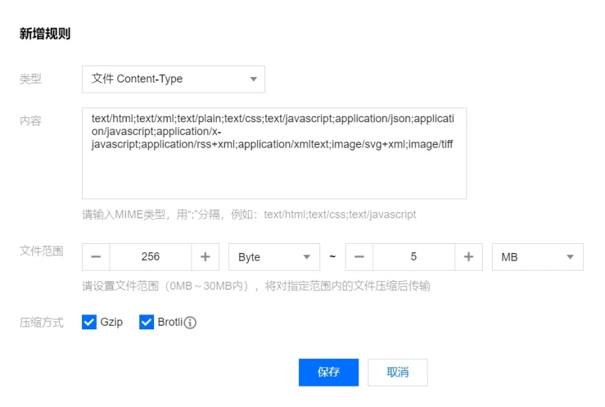 腾讯云 CDN 支持 Brotli 与 Gzip 两种压缩方式,只要两种方式都勾选的话,优先采用 Brotli 压缩方式。但若源站开启了压缩功能,且服务端携带响应头:Content-Encoding,则 CDN 的压缩功能将不再生效。