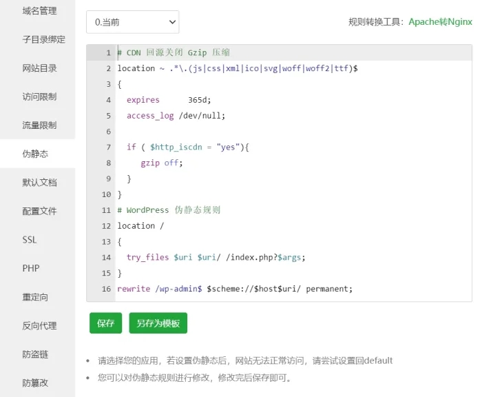 如果使用的是宝塔面板,参照如下示例: